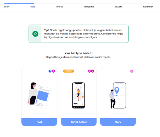 Kies in stap 2 of je een Reel, TikTok of Story wilt plaatsen.
