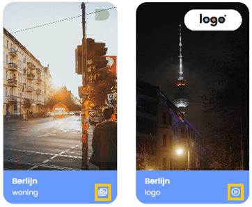 Aan het icoontje rechtsonder in het template zie je of het om een afbeelding of video gaat.