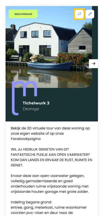 Dan verandert het woord “Te koop” op het template automatisch naar “Verkocht”.