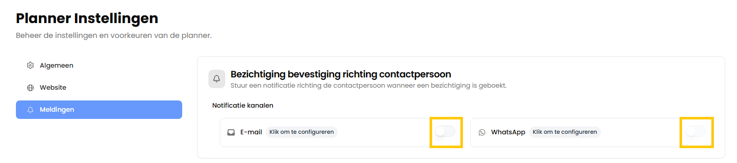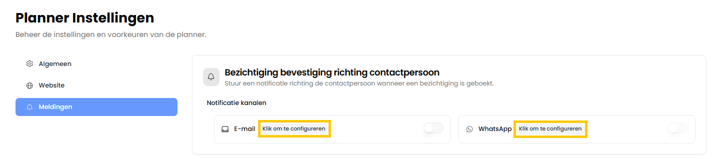 Meldingen en notificaties instellen in de bezichtigingsplanner