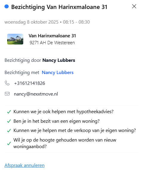 Algemeen: extra vragen bij het inplannen van een bezichtiging