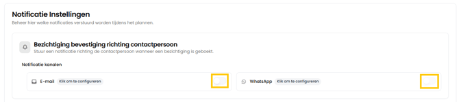 Om de notificaties te activeren zet je het schuifje bij E-mail of WhatsApp naar rechts.
