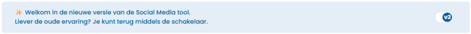 Geen probleem! De oude versie is nog beschikbaar. In het beginscherm van de tool kun je eenvoudig met de toggle naar links schakelen naar versie 1. Hier vind je ook al je oude en eerder ingeplande posts terug.