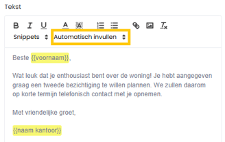 De placeholder verschijnt direct in je tekst. Bij verzending wordt hij automatisch gevuld met de juiste gegevens.