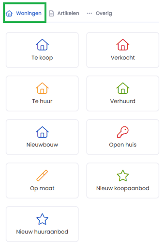 Klik bij de optie Woningen op een van de beschikbare categorieën (bijvoorbeeld Te koop of Te huur).