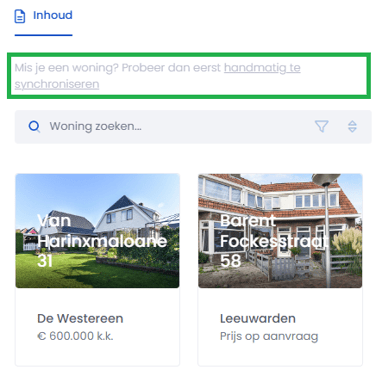 Mis je een woning? Klik op probeer dan eerst handmatig te synchroniseren.