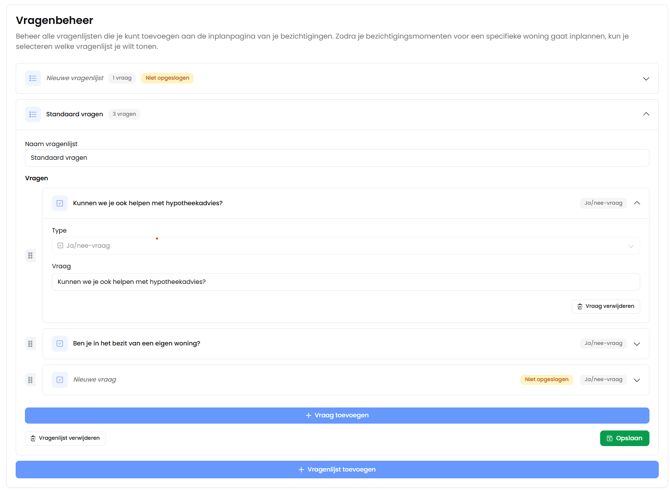 Vragenlijsten beheren in de planner