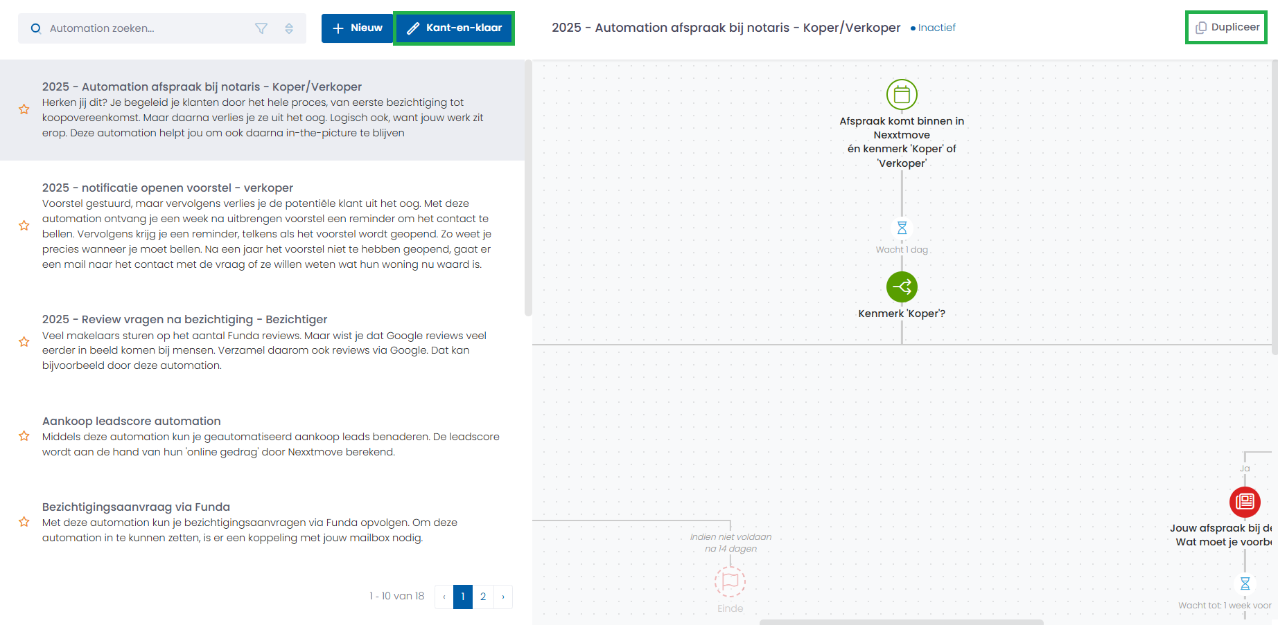 Kant-en-klare automations gebruiken in Nexxtmove